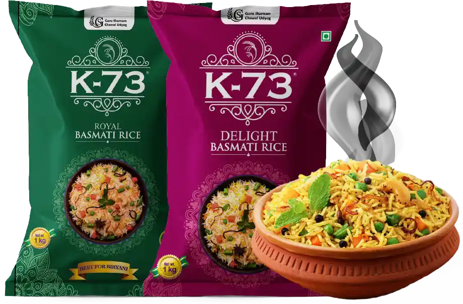 Sehat aur swaad ka perfect blend— K-73 Basmati Rice.